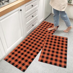 Cushioned Anti-Fatigue Kitchen Mats – Orange & Black Checkered (Set of 2)