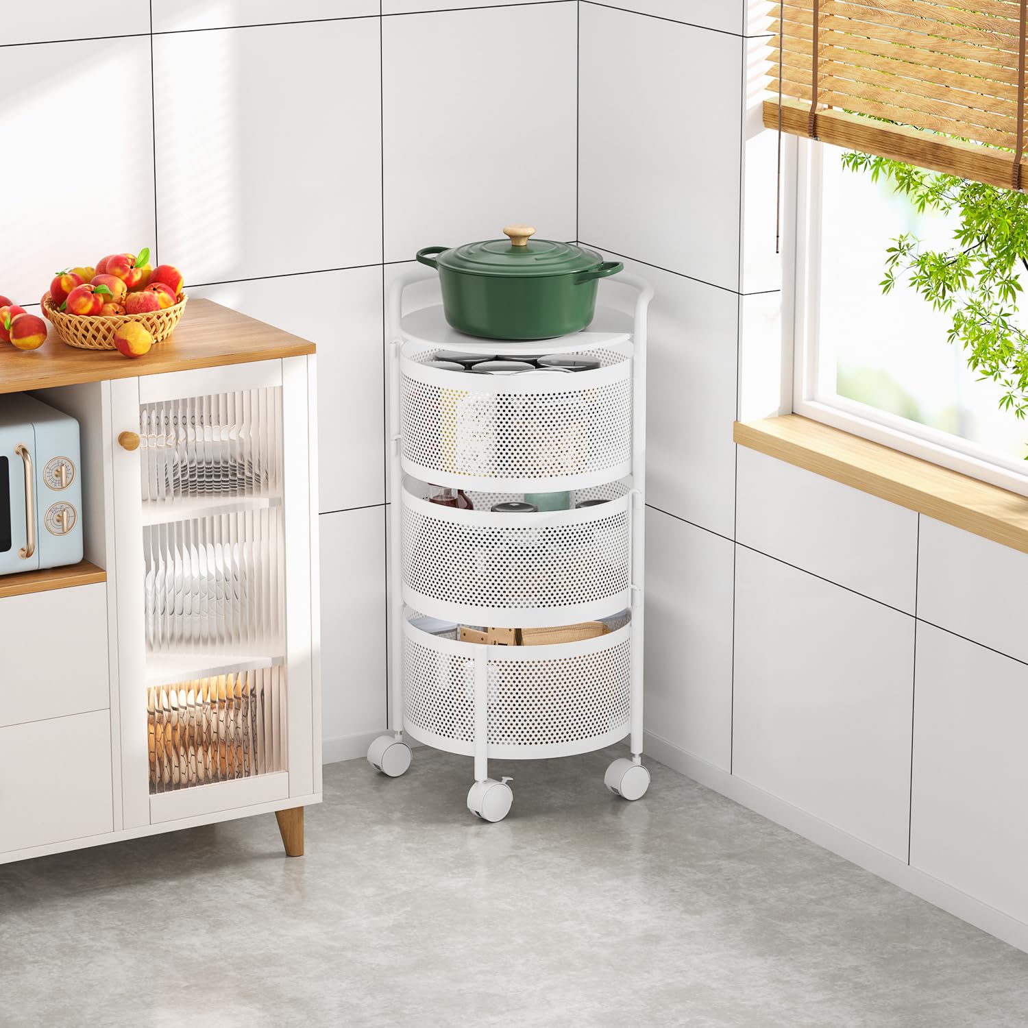 - Assembly Free: You can directly use the rolling storage basket and no need to set it up. and it is very easy for you to clean your kitchen by moving its rolling wheels